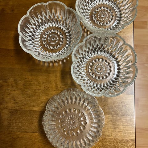 Kauniit käyttämättömät9 jälkiruokakipot, 6 kpl, halk. 13 cm, syv. 3-4 cm