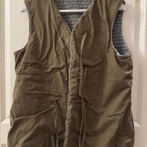 Maasto-kuvioinen lammasvuorinenliivi koko M eikö muka palella pohjoisessa on