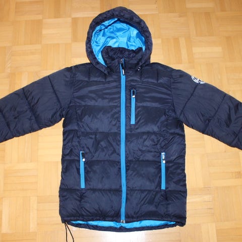 Takki sini/musta kokoa 152. Housut vihreät koko 140. Lämmin toppaus. Sopii rinteeseen tai talven rientoihin. Housuissa hieman kulumaa lahkeessa ja takissa jotain pientä likatahraa.