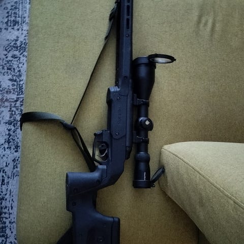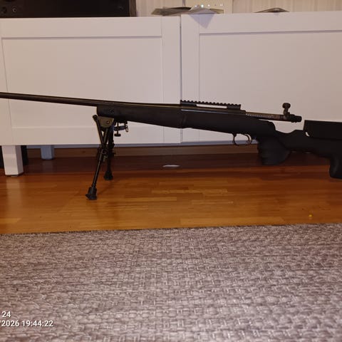 Ylimääräiseksi jäänyt, erittäin tarkkakäyntinen Remington kuin uudella Boydsin säädettävällä tukilla (alkuperäinen lakattu tukki mukaan, siinä teippiin kirjoitettu 10g Scenarin osumapisteet eri matkoille). Aseen laukaisu on asemestari Toron säätämä. Päällä weaver-kisko, mukaan saa BR-tuotteen erittäin jämäkät yksiosaiset jalat 1" putkelle. Vaimentimena rosterinen Ase-Utran SL5i. Kiikari ei kuulu hintaan mutta voidaan tarvittaessa neuvotella (tällä hetkellä päällä halpa hirvikiikari, mutta ase on rakennettu pidemmän matkan ammuntaan). Vaaditaan poliisin myöntämä hankkimislupa.