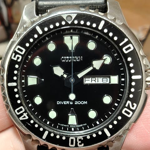 Citizen Promaster Diver -rannekello, musta väri, unisex-malli. Kellossa on analoginen ja digitaalinen näyttö. Kunto todella hyvä ja käy ja kukkuu. Vilkuttaa er-vikakoodia sekunnin välein eli digitaalinen puoli vaatii huoltoa/nollausta.