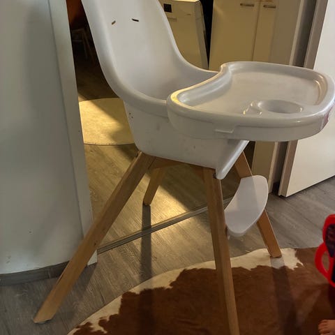 Lasten syöttötuoli harmaa, irrotettava tarjotin ja jalkatuki. Vyöt vähän värjäytyneet.