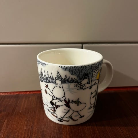 Mukin tilavuus piripintaan asti on 3 dl. Korkeus on 9,5 cm, halkaisija 8 cm.