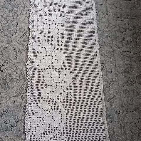 Virkattu valkoinen pitsikappa 175 x 34 cm