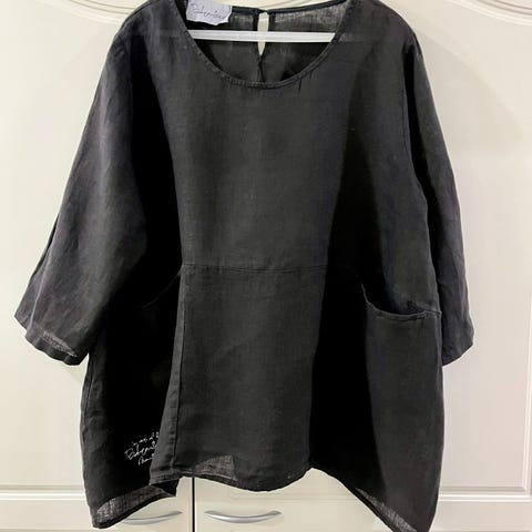 Kaunis vaaleansininen pellavapaita, jossa näyttävät kerrokselliset frillahihat. Mukavan rento ja ilmava päällä, sopii hyvin boheemiin tai rennon tyylikkääseen lookiin.