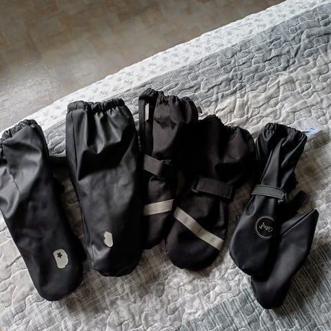 Mukaan vielä nahkarukkaset, sisäkarva painunut, joten tarvitsee lapaset pakkasilla lisäksi.