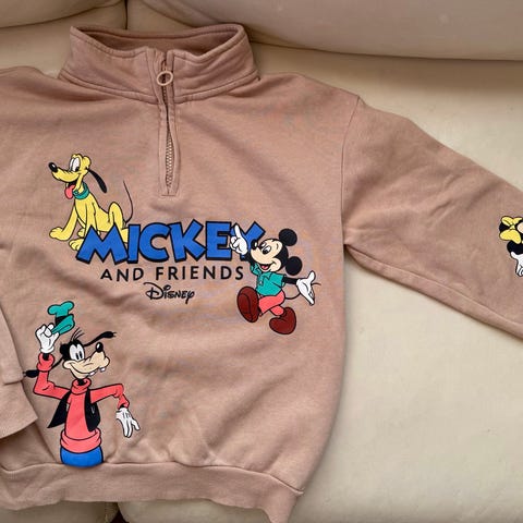 Kiva pitkähihainen retro collegepaita Mikin ja Pluton kuvalla ja harmaat collegehousut.