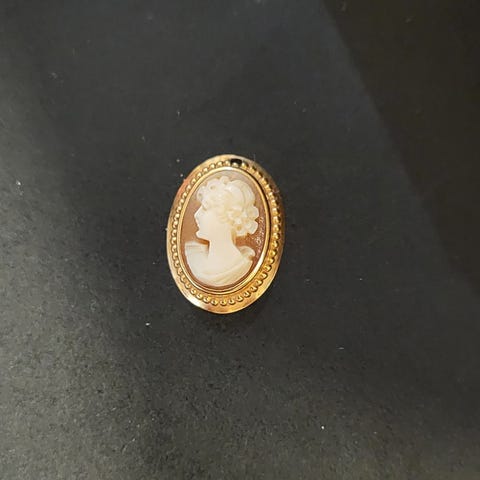 Kaunis Camee riipus 14k / 585 keltakultaa. Korussa ei ole kaiverruksia.