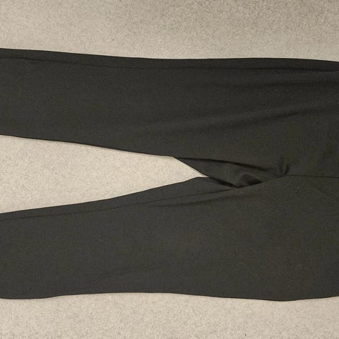 Ohuet ja miellyttävän pehmeät, korkea, jonkun verran joustava vyötärö (5,5 cm), ympärysmitta 91 cm. Suorat, melko leveät ja todella pitkät lahkeet, haaroista lahkeen suuhun 81 cm, housujen pituus vyötäröltä lahkeen suuhun 114 cm, lantio 109 cm.