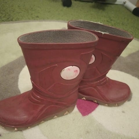 Punaiset kumisaappaat.