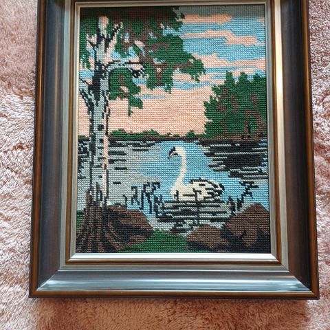 Kauniisti tehty ristipistotyö tyylikkäällä kehyksellä. Taulun koko 89x64 cm.