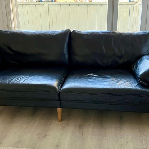 Sohvan istuinosat ja kulutuspinnat ovat pehmeää, aitoa nahkaa, sohvan sivut ja taustat on verhoiltu keinonahkalla.