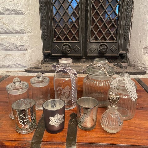 kerran häissä käytetty. toisissa ollut kynttilöitä ja toisissa kukkia.