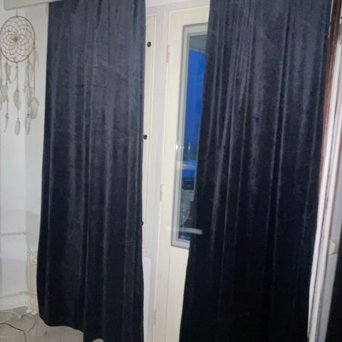 Myytävänä tulppaani kuvioiset pitkät verhot.
