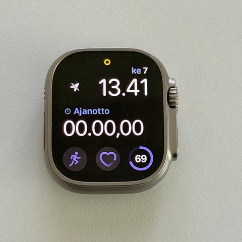 Ostin rikkinäisenä, vaihdoin näytön ja alkoi pelittään. Kun päivitin puhelimen niin kello vaati päivityksen ja päivityksessä jotain meni pieleen. Tulee logo "vie kello puhelimen viereen" mutta tämä ei auta vaan kello on jotenki jumissa. Kuvassa näkyvät laturi ja ylimääräinen ranneke mukaan.