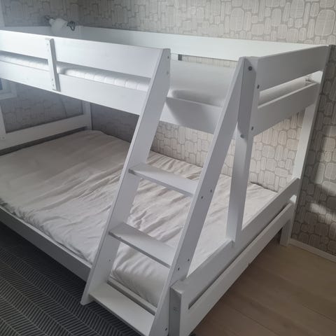 Myydään valkoinen kotimainen kerrossänky, joka on purettu. Hyvässä kunnossa! Nähtävillä käytön jälkiä. Patjat eivät kuulu mukaan.