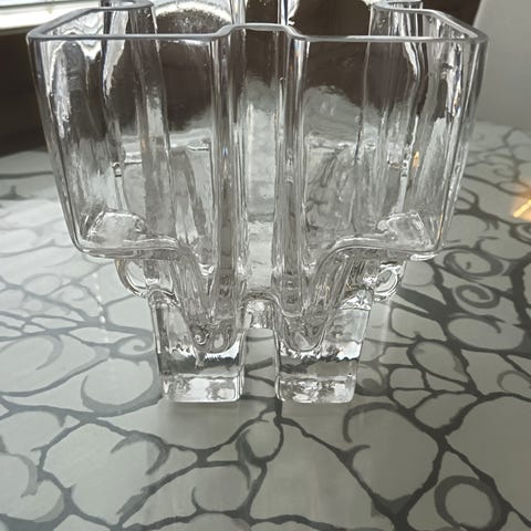 Pohjan sisäpohjassa pari pientä tekovaiheen lasinsisäistä epäpuhtautta, näkyy vain yläpuolelta katsoen.