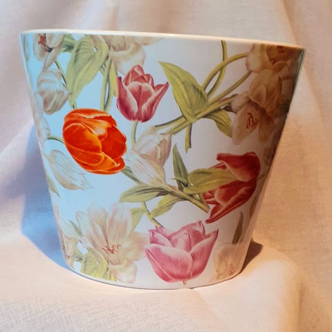 Keraaminen, tumman sini-violettiin vivahtava, koboltinsininen suojaruukku tai tarjoiluun etc. korkeus noin 9cm, ylähalkaisija noin 16cm.