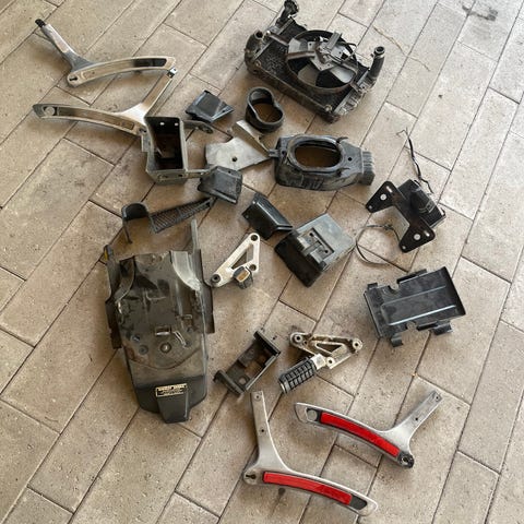 Myydään seuraavat jäljellä olevat Honda VF 700 C (vm.1985) purkuosat: jäähdytin+kaikki siinä kiinni olevat "hilppeet"(näkyy kuvassa) 25€, puolapaketti 15€ ja etuvalo 20€ .Näille kaikille osille tulee toimivuustakuu ja nämä osat käyvät myöskin Honda VF 750 customiin(about samaa ikäluokka oleviin).