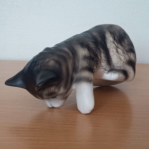 Myynnissä kuvien ehjä, pinnaltaan kolhiintunut keraaminen kissakoriste. Korkeus on 27 cm. Lähetän ja kulut ovat 7 e, kulkeutuu myös Turkuun ilmaiseksi