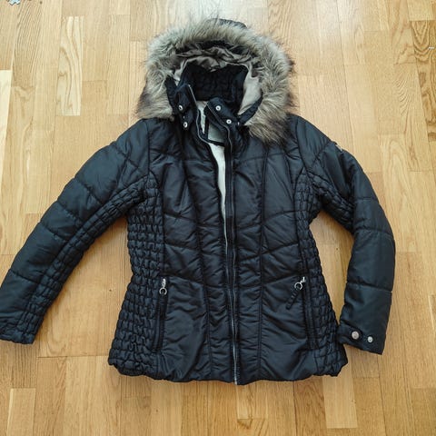 Pituus noin 106cm, hiha olkapäästä resorin loppuun 68, resoria voi kääntää jos hia liian pitkä, kainalo-kainalo mitta noin 67cm. Takissa liukas vuori, vetoketjulliset taskut.
