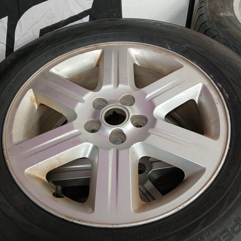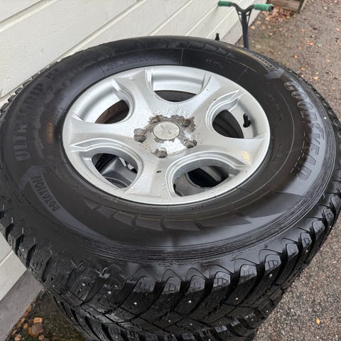 Land Roverin aluvanteet 6x16 5x114.3 ET:46 KR:65,1..kohtuukuntoisilla Linglongin 215/65R16 nastarenkailla.