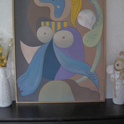 Suuri öljyvärimaalaus kankaalle varustettuna kapealla kehyslistalla. Takana ripustuslanka. Taulu käsitelty kellastumattomalla vernissalla. Tässä tunnelmaa huoneen seinälle. Nouto Tuusula Jokela.