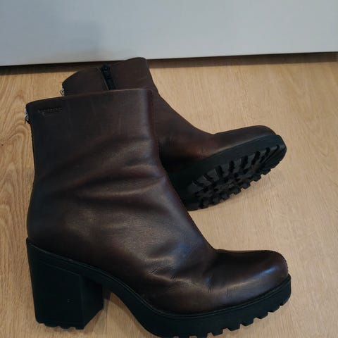 Vagabond ruskeat saappaat, valmistettu nahasta, koko 39. Nilkkapituiset saappaat, joissa kiilakorko. Sopivat naisten käyttöön.