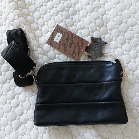 Nahkainen musta olkalaukku