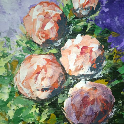 Akryylimaalaus kauniissa puukehyksissä. Mitat kehyksineen: leveys 38,5 ccm, korkeus 48,5 cm, kehyksen leveys noin 4,5 cm.