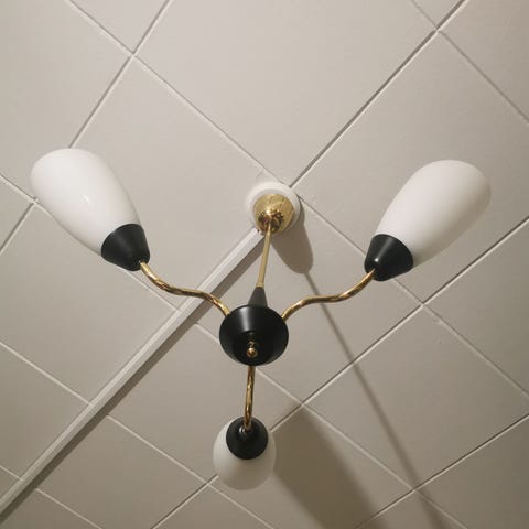 Kuvan Messinki / koristelasi lehtinen kattovalaisin. Kolmespottinen. Siisti ja toimii.