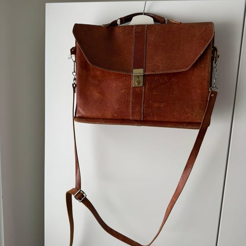 Laadukas vintagenahkainen olkalaukku "salkkulaukun" tyyliin