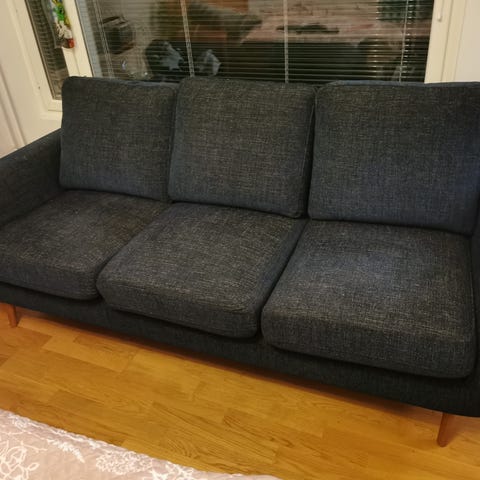 Myydään kuvan mukainen siisti kuntoinen 3-istuttavasohva. Huom! Vain nouto ja omat kantajat mukaan.
