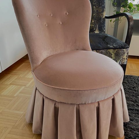 Päällystetty kauniilla terrakotan värisellä kankaalla (Lauritzon).