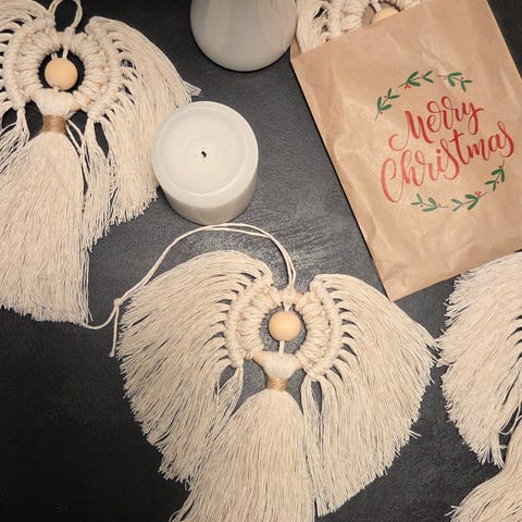 Uusi, mintunvihreä makramee-enkeli. Hieman kovitattu. Pakattu sellofaaniin ja pahvitaustaan. Korkeus noin 20cm + ripustusnaru. Ostaja noutaa Salosta tai toridiili