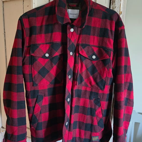 Myynnissä siistikuntoinen Vailent -merkin ruudullinen flanellitakki ohuella tikkivuorella.