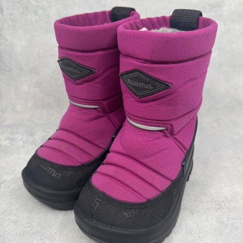 Hyväkuntoisia pieniä Kuoma talvisaappaita lämpimällä villavuorella. Kaikista löytyy tarkat tuotekuvaukset sekä paljon lisää kuvia verkkokaupasta www.parastapienellesi.fi tai klikkaa ”Osta myyjän sivustolta” - painiketta niin pääset selaamaan kaikkia myynnissä olevia Kuoma talvisaappaita.