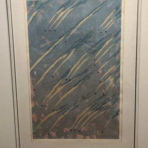 Amanin vedos 16/25 "Yksinäinen poro" vuodelta 1980. Työn korkeus on 30 cm ja leveys 46 cm. Lasikehys 51 X 72 cm.