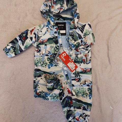 Sininen Reiman vedenpitävä kuorihaalari koko 74. Hieman tahroja, muuten siistissä kunnossa ja ehjä. Ihana kuosi.