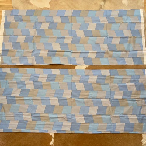 Marimekko Pilotti kangas, kaksi kappaletta, vaaleansininen ja valkoinen väri. Kangas on puuvillasekoitetta ja soveltuu erilaisiin ompeluprojekteihin tai sisustuskäyttöön. Verhokapat myydään yhdessä.