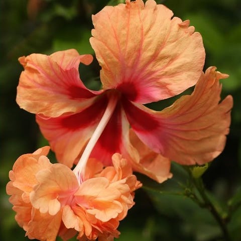 Vaaleanpunasia tuoksuvia kukintoja tekevä tea ruusu. Lehdet tuoksuvat teeltä.