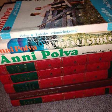 Iso paketti Anni Polvan kirjoja. 11 kpl kovakantisia ja yksi pokkari. Alkaen 60-luvulta. Useinpiin löytyy myös paperikannet (niiden kunnossa sanomista). Myydään mieluiten pakettina, jos yksittäin niin kappalehinta 2€/kpl.