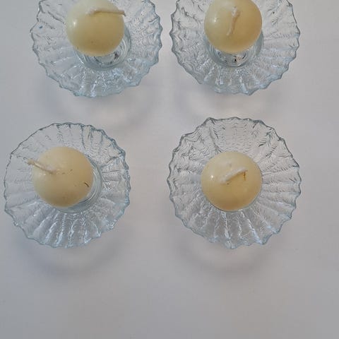 Jalat on moitteettomat. Lisäksi mukaan tulee alkuperäisiä kynttilöitä, polttamattomia, pun 5 kpl ja sin 8 kpl. Kynttilöissä pinnassa naarmuja.