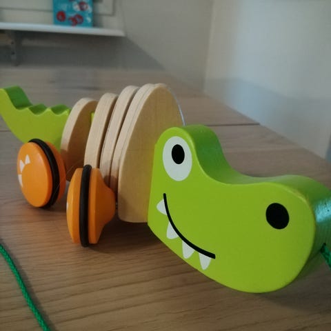 Sveitsiläisen Hape-merkin kilpikonnateemainen vetolelu, jossa on muotojen lajittelutoiminto.
