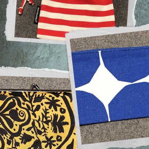 Marimekko pussukka/kukkaro, 14x19cm, puuvilla. Käytetty, käytön jälkiä, etenkin sisäpuolella, ehjä.