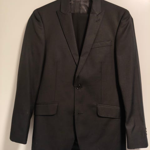 Myydään Topper miesten puku, koko C44, musta. Materiaali 55 % villaa ja 45 % polyesteriä. Puku sisältää takin ja housut. Sopii muodollisiin tilaisuuksiin ja työkäyttöön.