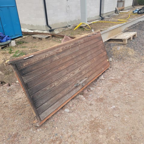 Yhdellä rakennuksella käytetty. Nyt n. 2 kk ollut seinänvierustalla taivasalla.