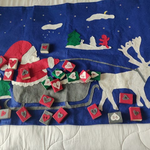 Ikuinen, huopapohjainen joulukalenteri koko 66 x 50 cm. Itse täytettävä.