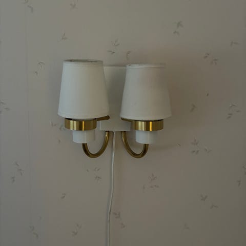 Seinään kiinnitettävä kaarivalaisin. Puuta ja messinkiä. Kaunis!