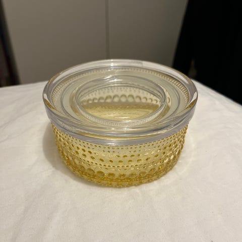 Iittala Kastehelmi lasipurkki, sininen väri. Valmistettu lasista, purkki sopii keittiövälineeksi tai säilytykseen. Purkki on läpinäkyvä ja siinä on koristeellinen kohokuviointi.